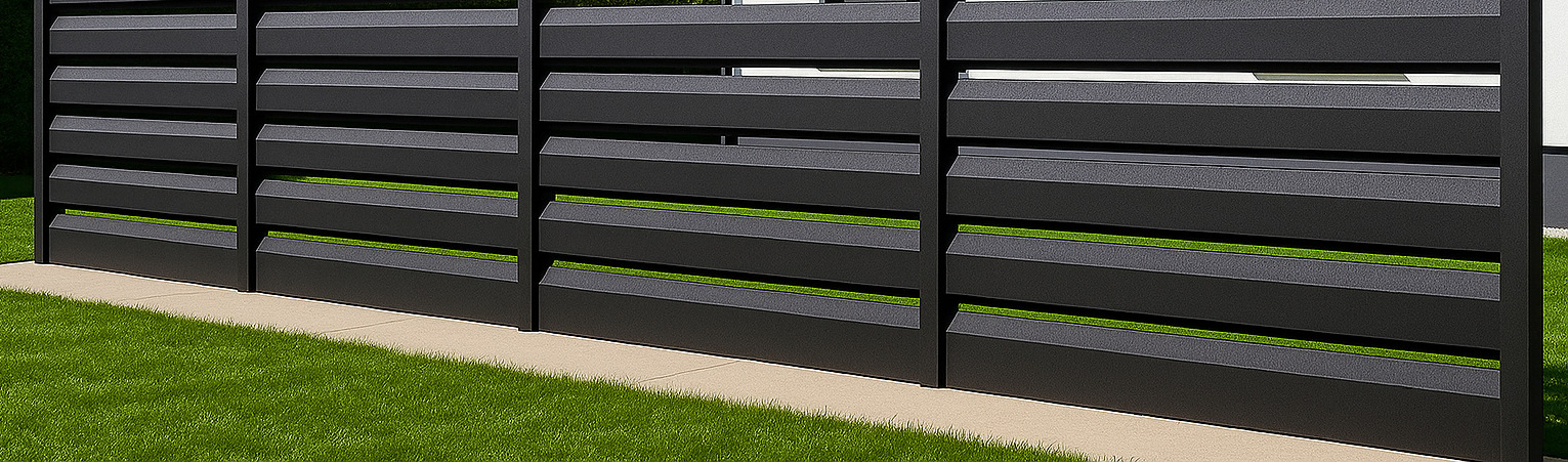Ogrodzenia z serii DOM-DACH-GARDEN dostępne są w szerokiej gamie kolorystycznej, a ich ostateczny wygląd można swobodnie konfigurować — łącząc różne kolory żaluzji w jednym ogrodzeniu a podczas montażu zmniejszając lub zwiększając poziom prześwitu pomiędzy lamelami.